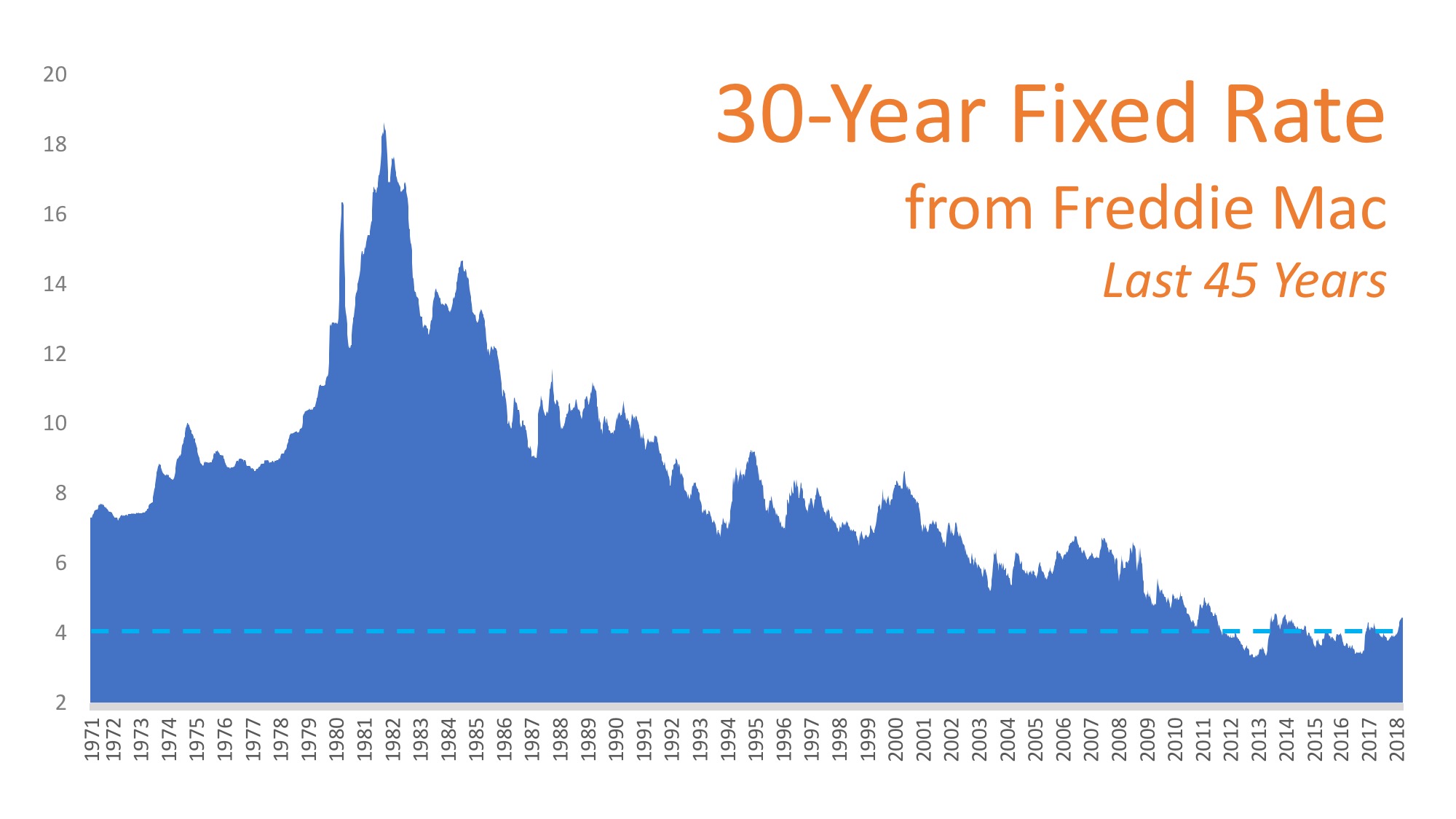 Let’s take a look at a historical view of interest rates over the last 45 years.