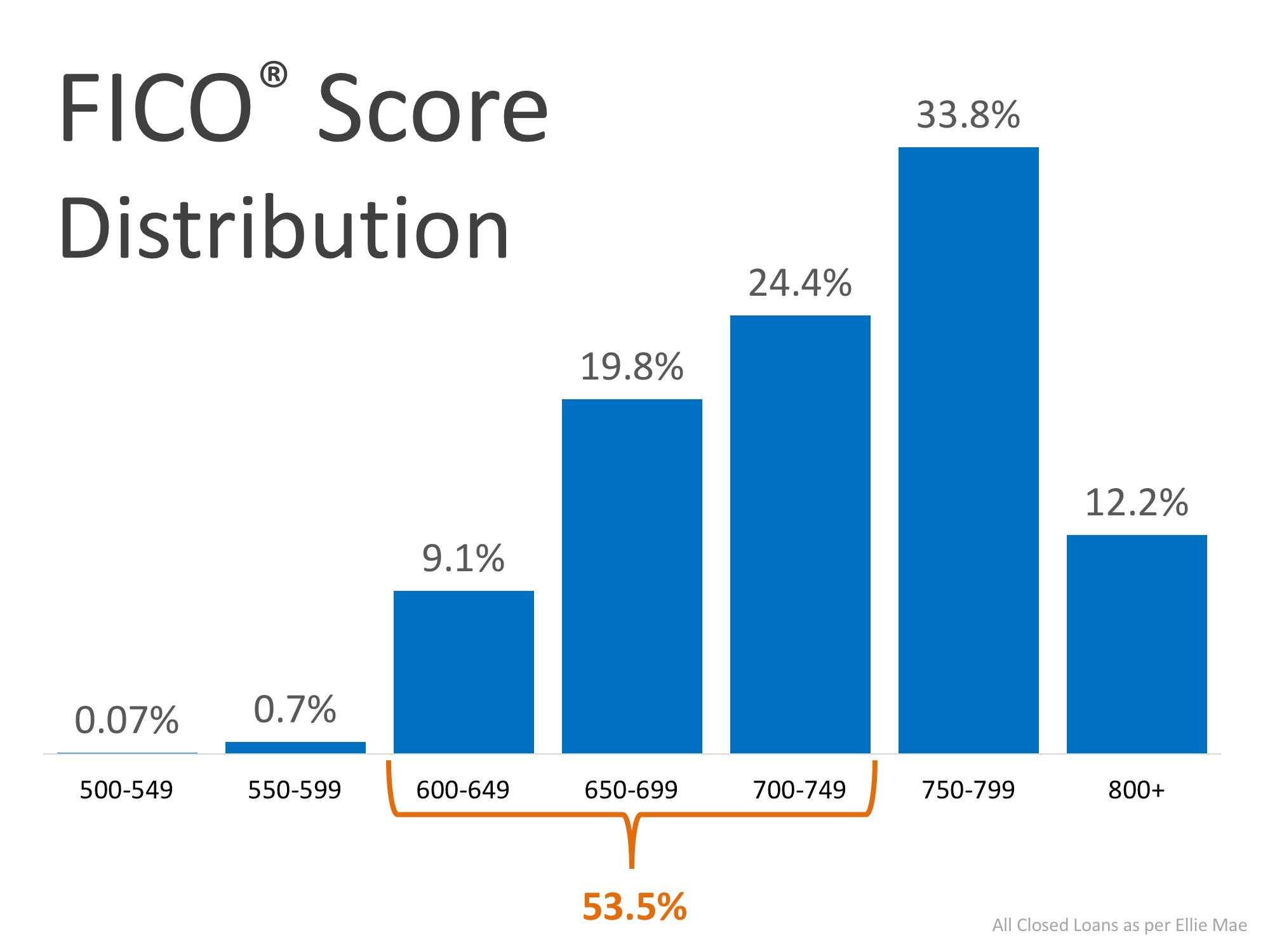 According to Ellie Mae’s latest Origination Insights Report, 53.5% of those who were approved for a home loan had FICO® Scores between 600-749 last month. This is great news for Americans who are looking to re-enter the housing market.