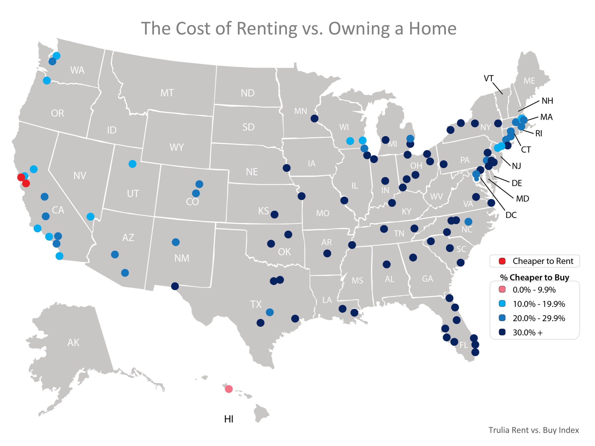 In the six years that Trulia has conducted this study, this is the first time that it was cheaper to rent than buy in any of the metropolitan areas.
