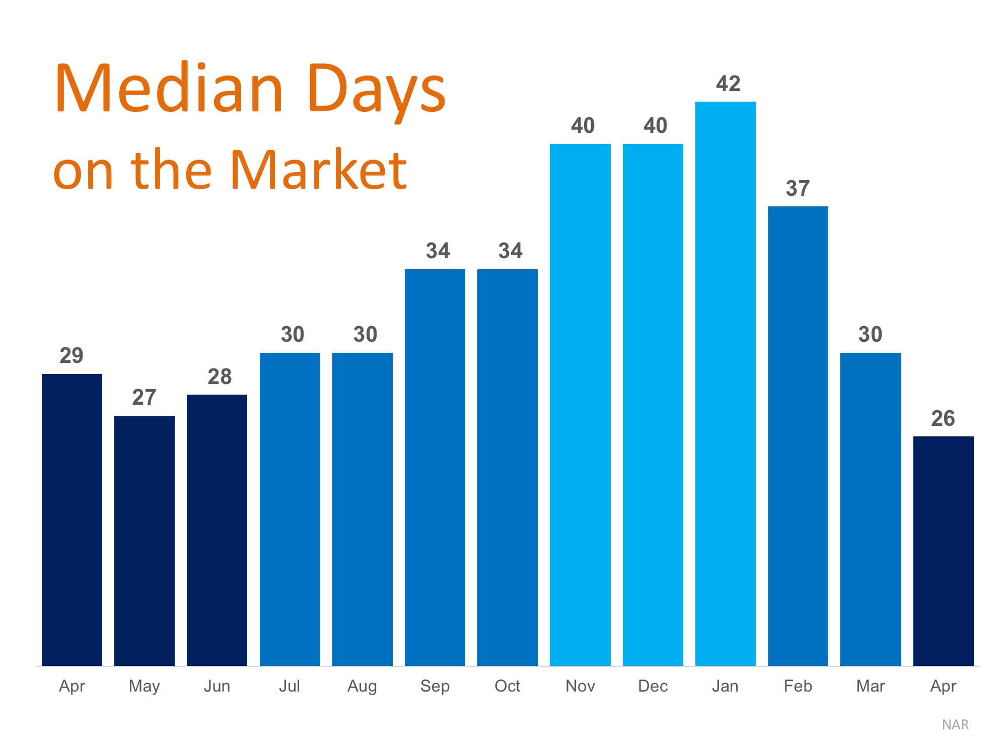 The chart below shows the median days on the market from April 2017 to April 2018: