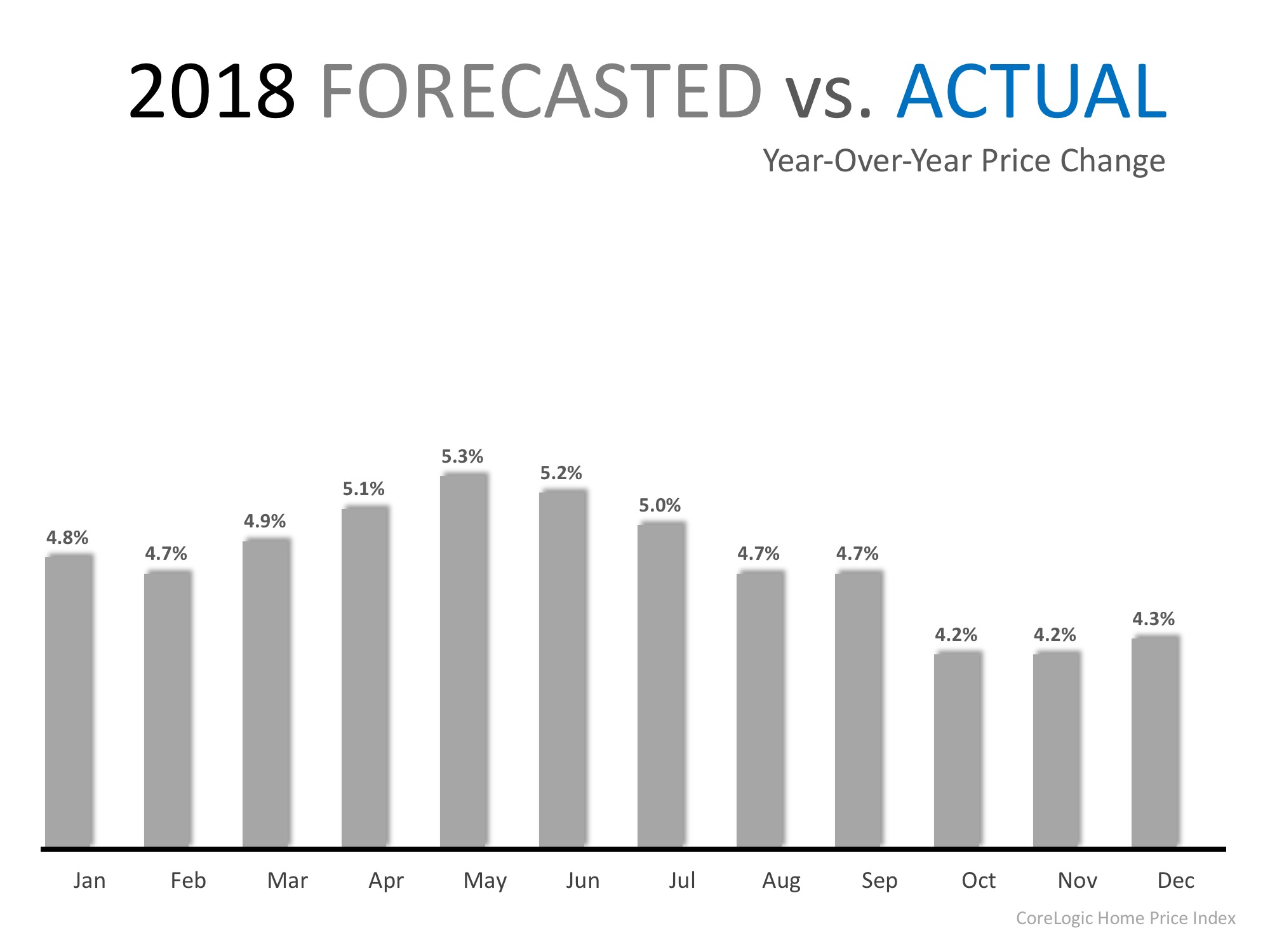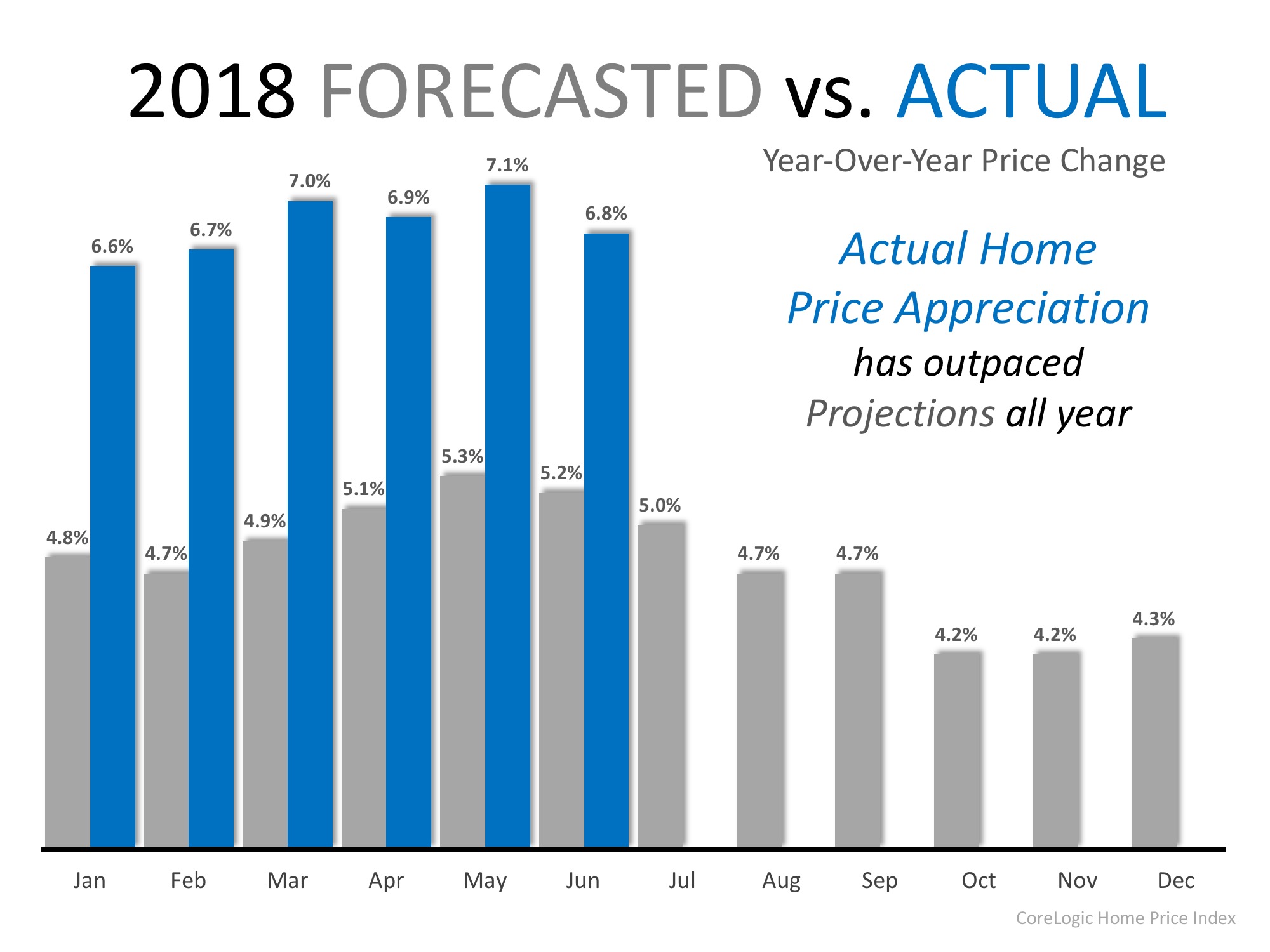 If we layer in the actual price appreciation that has occurred this year, we can see that over the course of 2018, home prices have appreciated by an average of 6.9% and have outpaced projections all year!