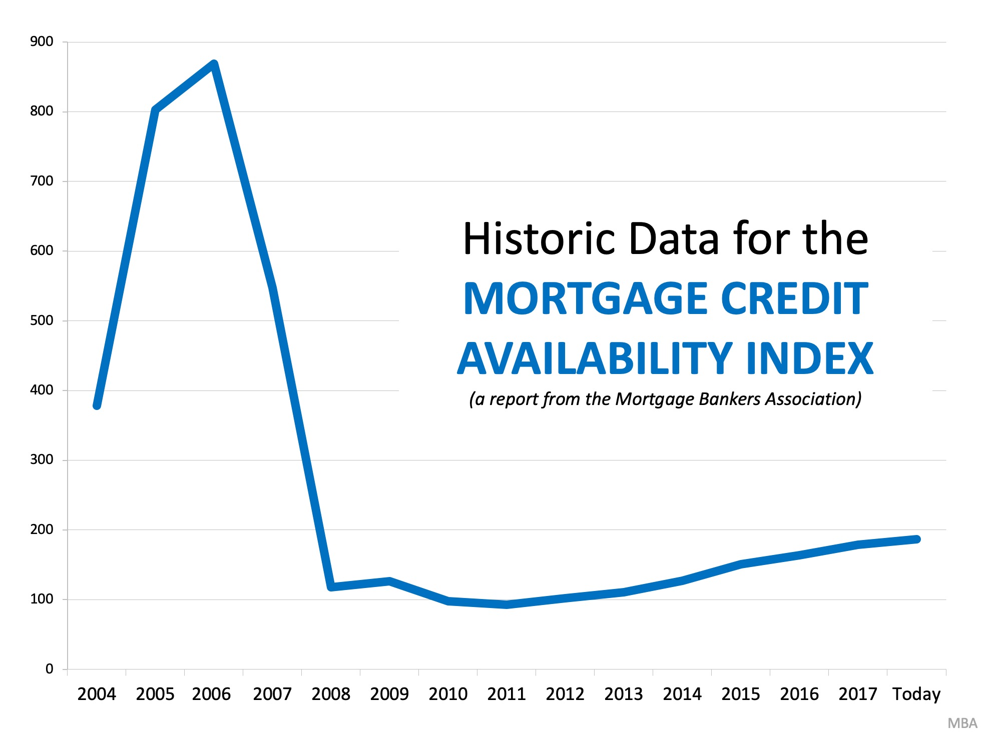 Each month, the Mortgage Bankers’ Association (MBA) releases a measurement which indicates the availability of mortgage credit known as the Mortgage Credit Availability Index (MCAI). According to the MBA: