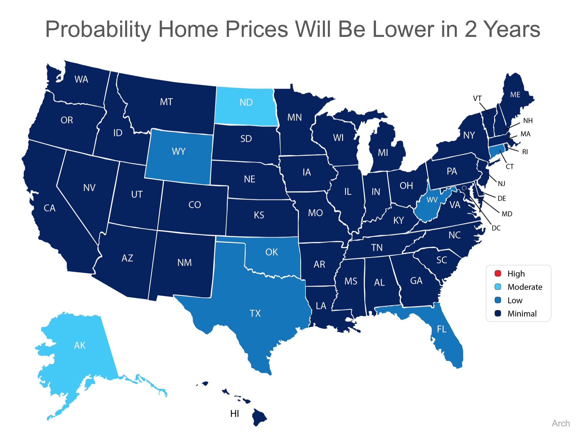 Below is a map depicting their projections (the darker the blue, the lower the probability of a price decrease):
